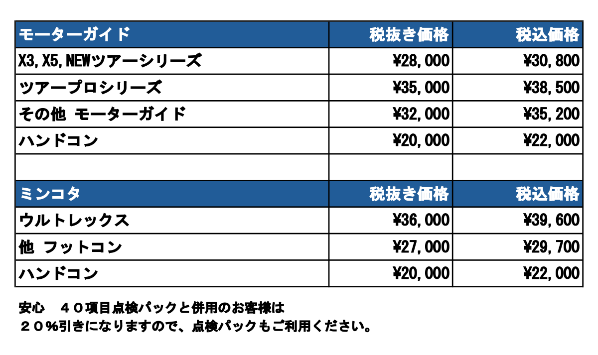 ※モーターガイドは部品の無い場合がございますのでご了承ください。その際もお知らせいたします。